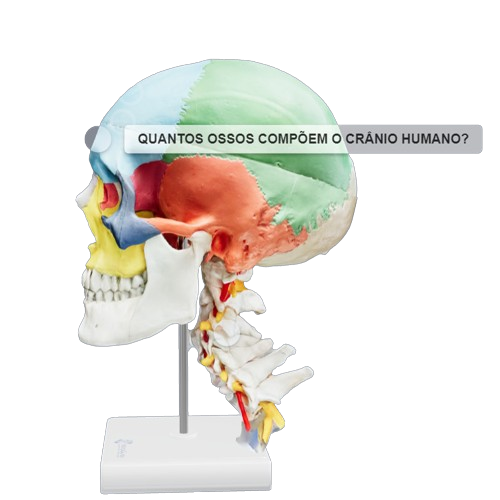 Using the generated code, we can structure multiple models on a single screen for study. For example, we have the head and skull, models that complement each other for a better understanding of anatomy.